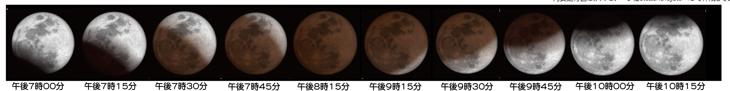 下は主な時刻での,月食進行図です。